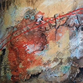 Sie malt vorrangig abstrakt in Collagetechnik unter Verwendung von Acrylfarben und diverserer Materialien und schafft auf diese Weise farbenfrohe und erdige Kompositionen mit interessanten Oberflächenstrukturen und Dynamik.